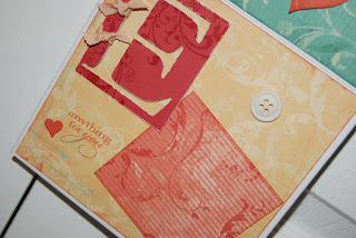 Hello! I've been working on this little wall hanging for a few days... I really wanted to print out some pictures to adhere to the 3x3 squares prior to posting this but I haven't taken any lately of my love and I that I really like so I'll have to go out this weekend and take some :) BUT I wanted to show the wall hanging because the paper and some of the stamps are only available thru CTMH till January 31st!!! I used the Key to My Heart Paper Pack again... I love the flourishy designs and the colors :) Additionally, I used Chipboard letters and covered them with Tulip cardstock and stamped on them with the corner flourish in the KTMH set. Also used some bling, colonial white buttons and the sentiment on the bottom "anything for you" is from the Priceless Love Word Puzzle... love this set and hope to make a few samples using it soon!!!